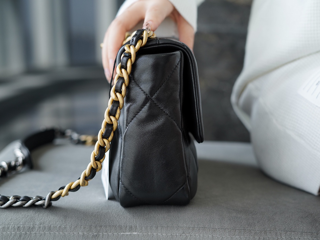 샤넬 19 스몰 플랩 핸드백 램스킨 · 블랙 · 골드 메탈