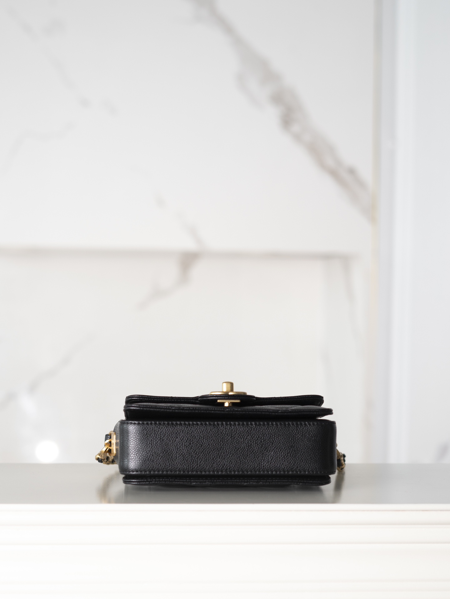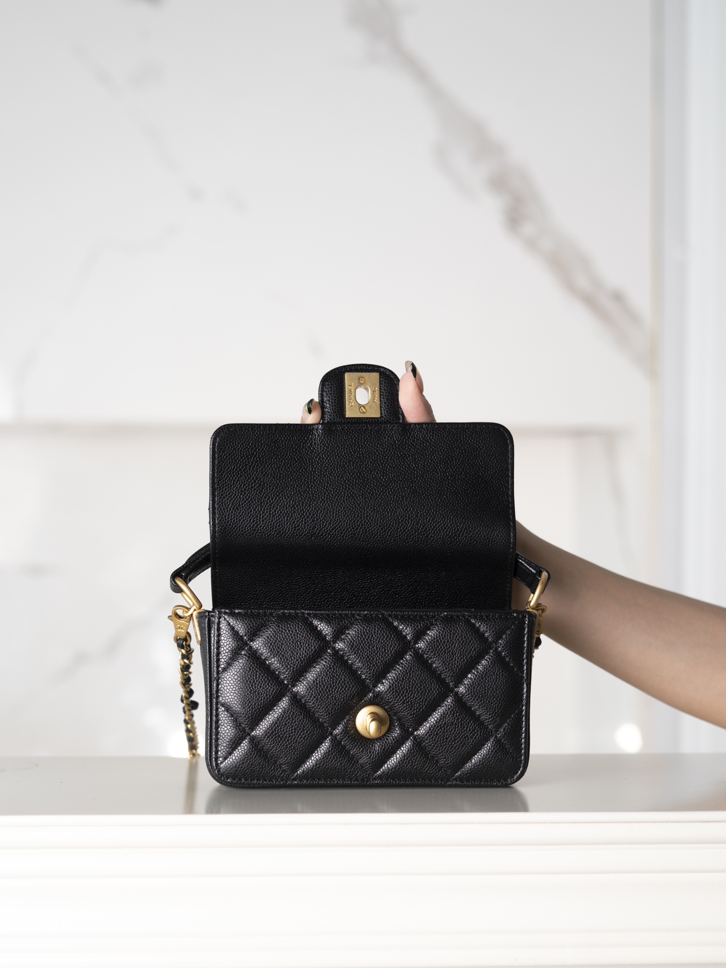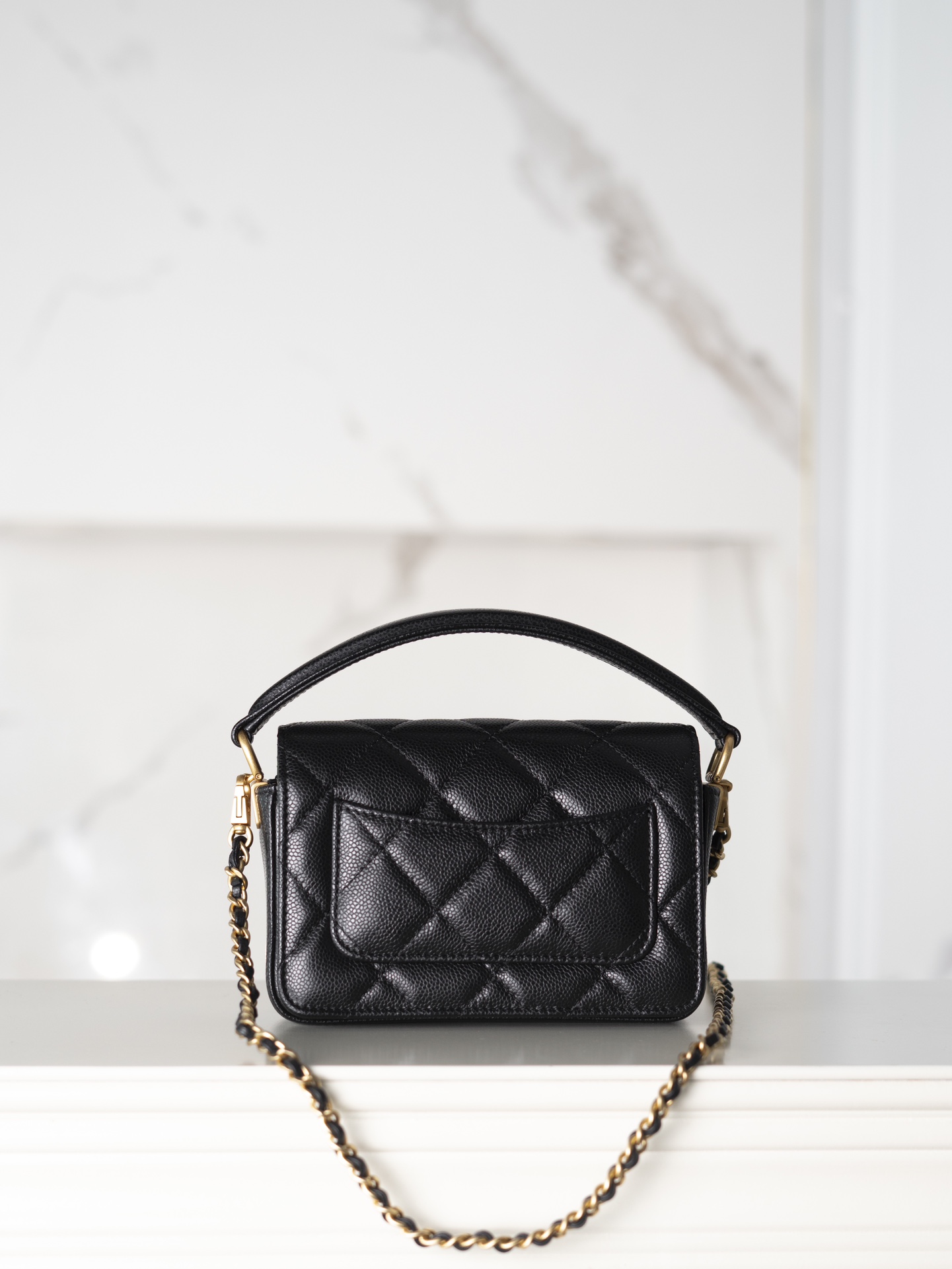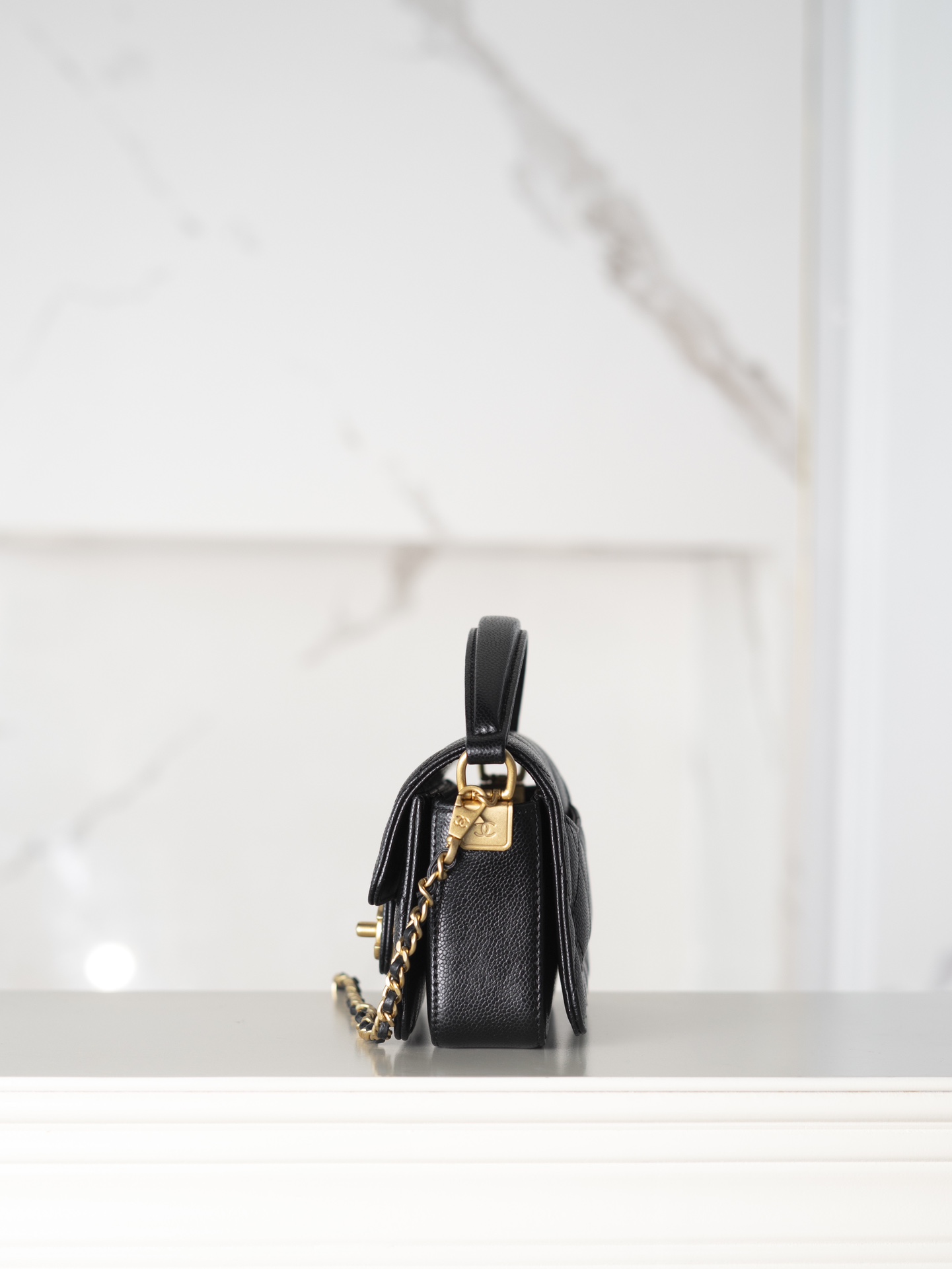 샤넬 24K 금장 클래식 플랩 핸들백 (미니) 블랙 · 캐비어 레더 · 골드 메탈