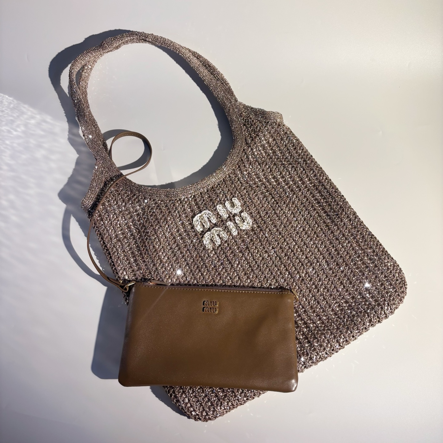 미우미우 아이비 스팽글 메쉬 백