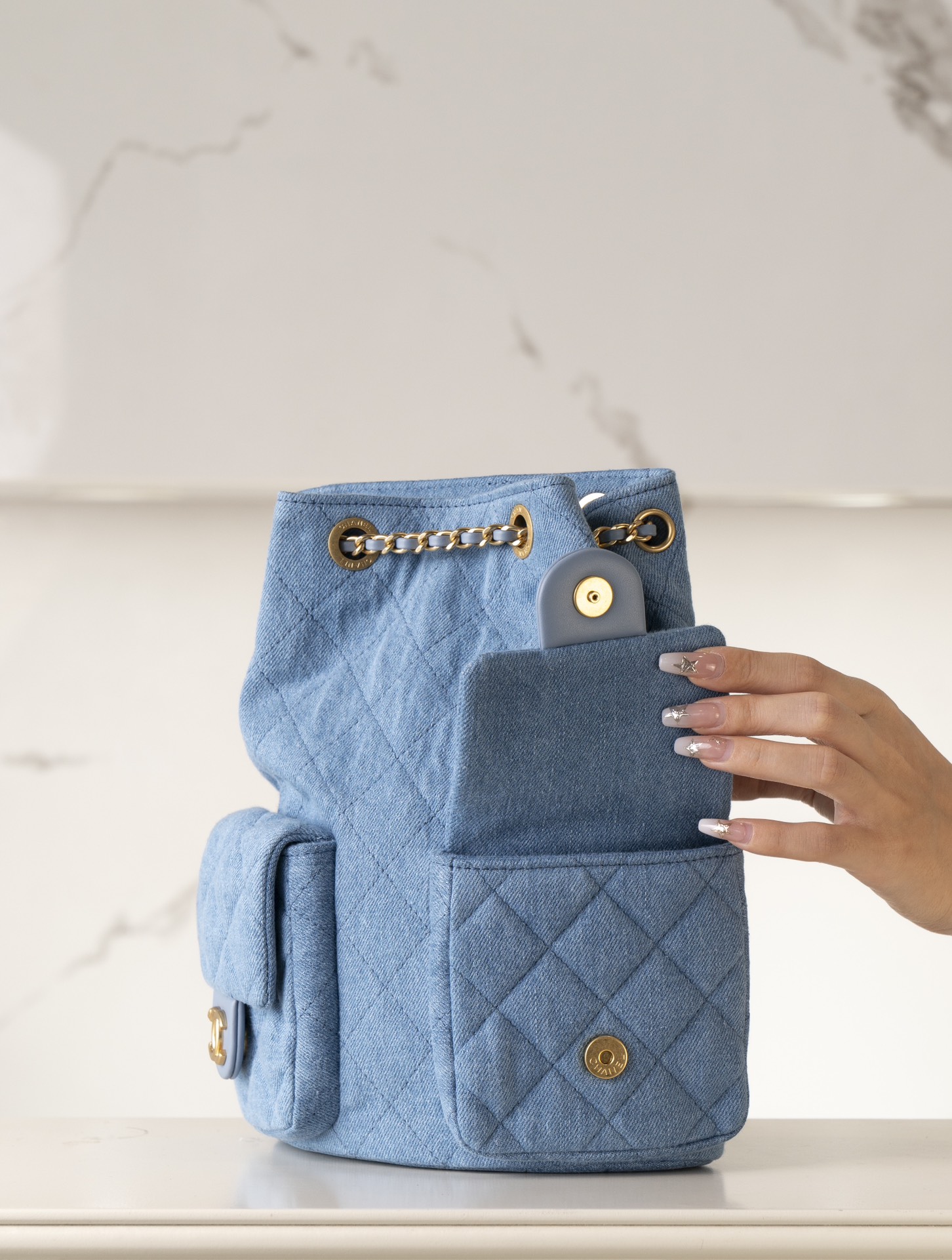 샤넬 데님 백팩 골드 메탈 25C