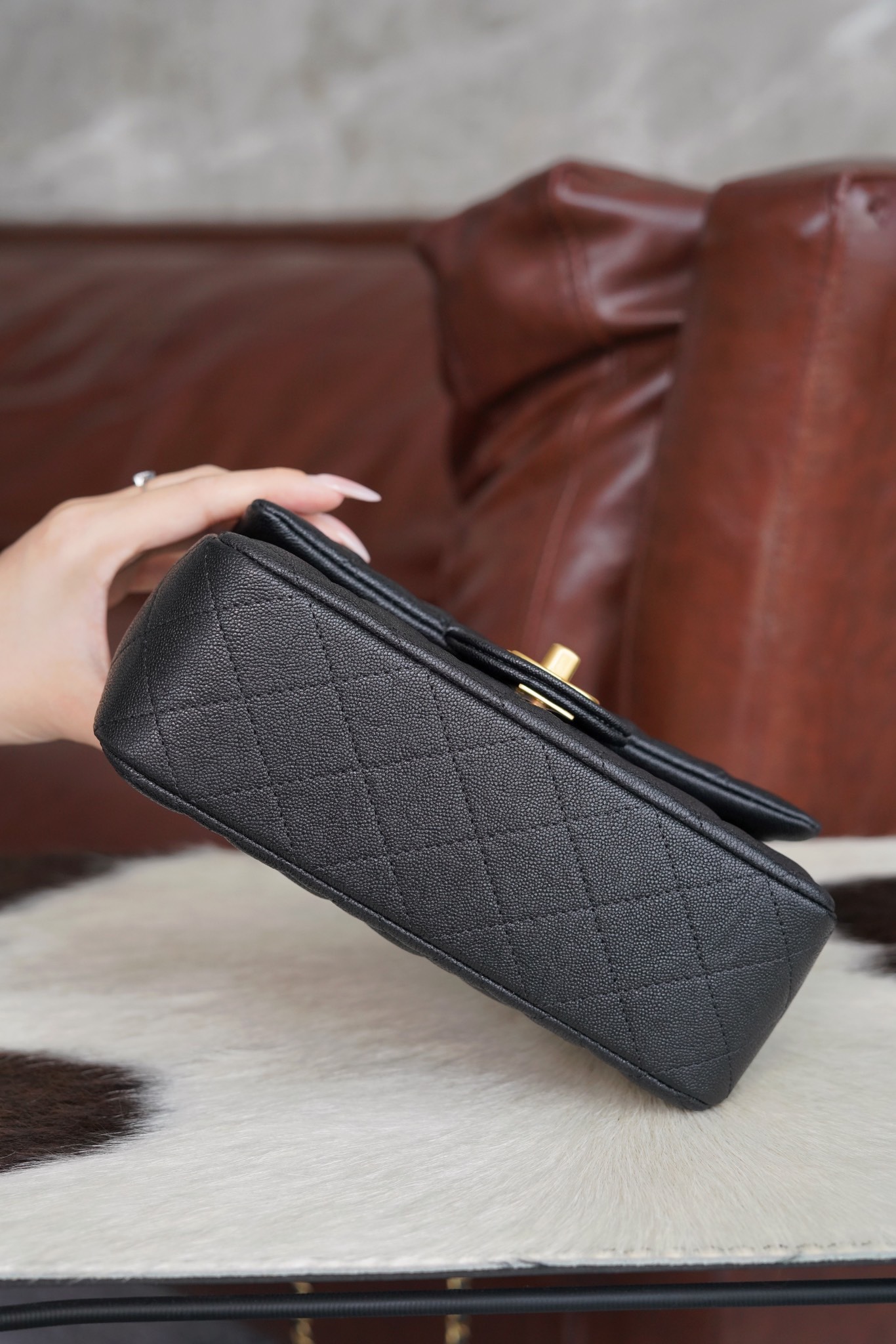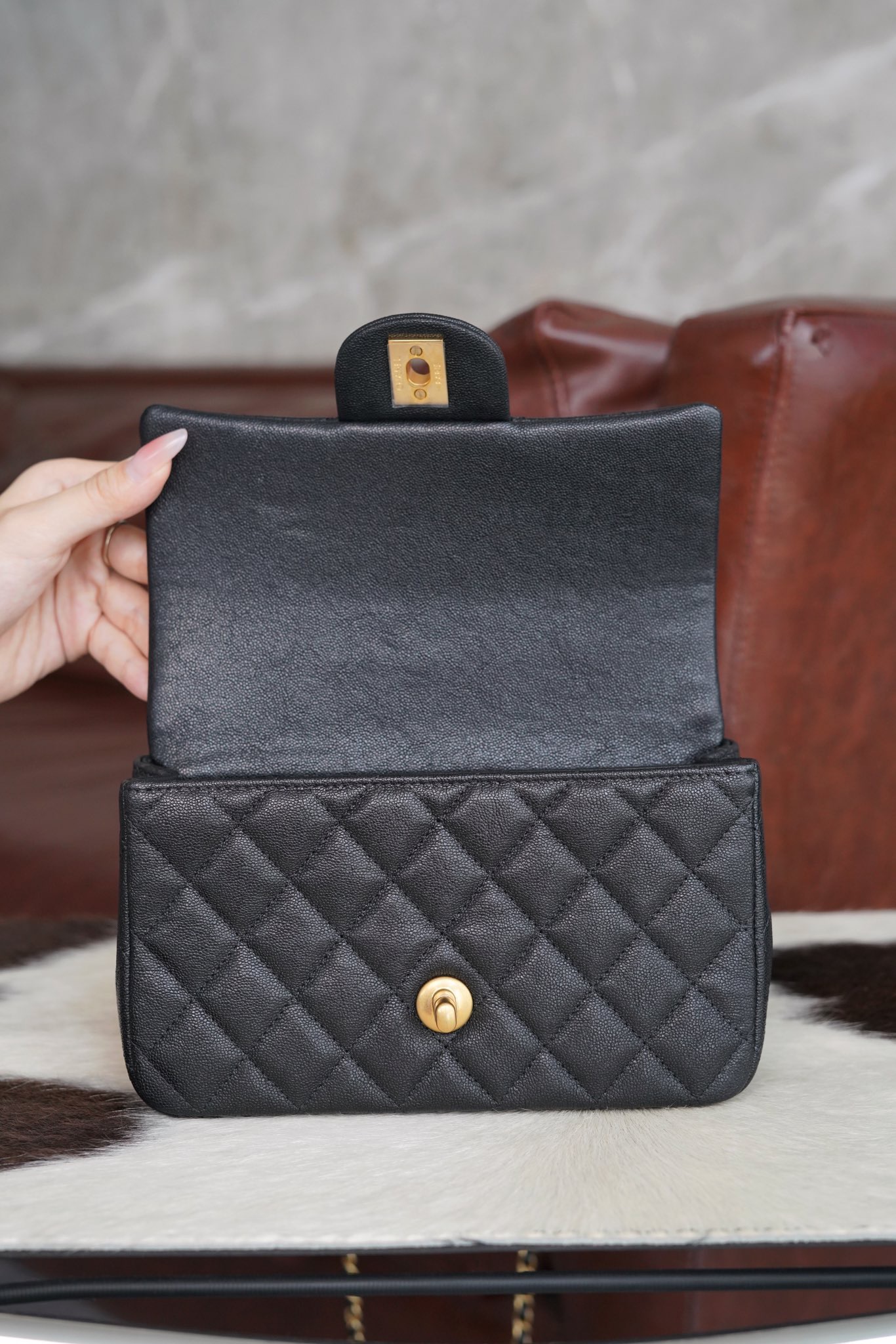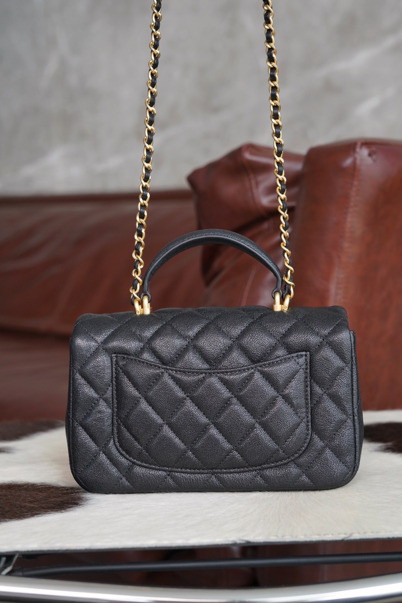 샤넬 클래식 탑 핸들 플랩백 캐비어 블랙 골드 메탈 21SS