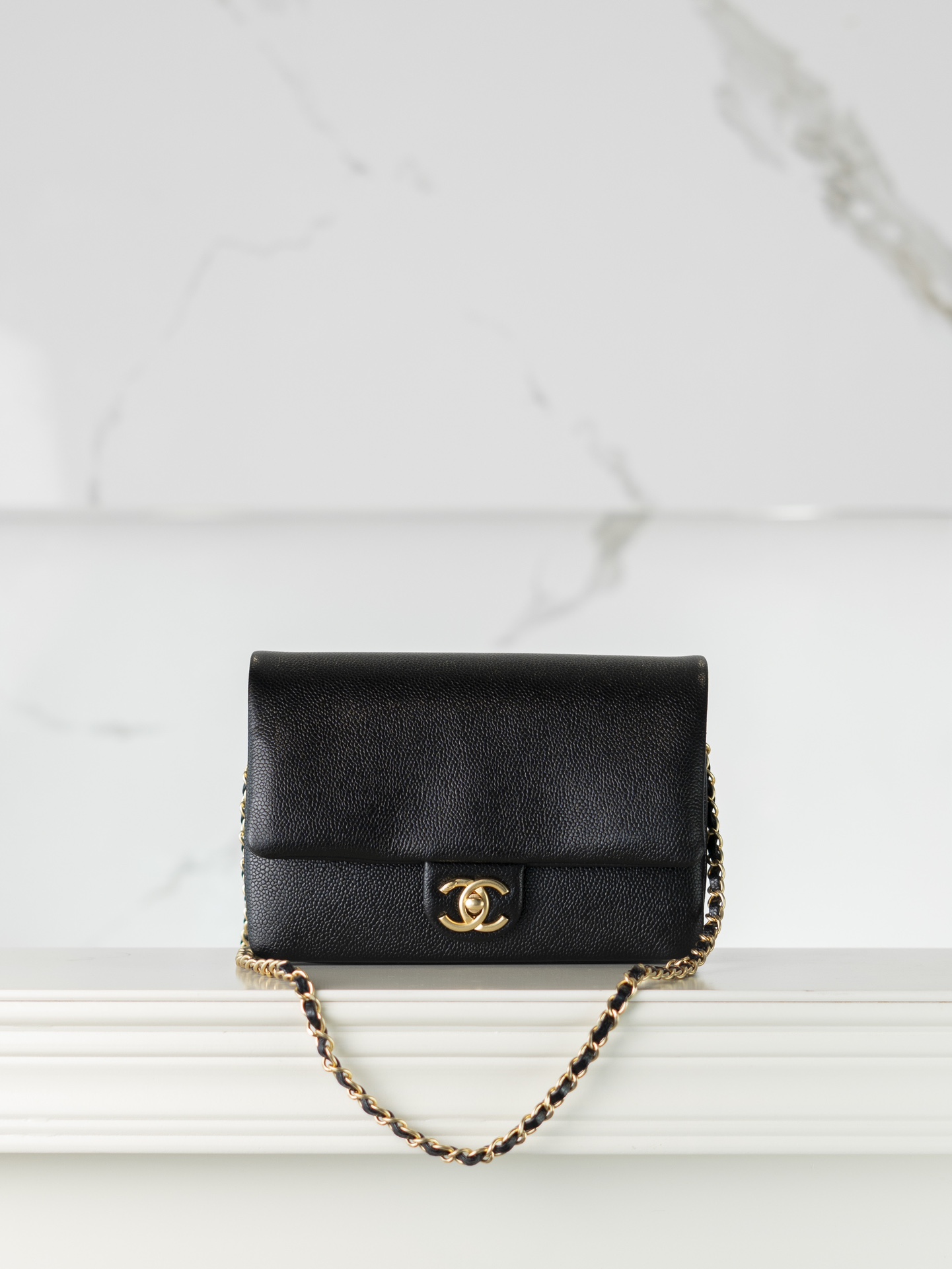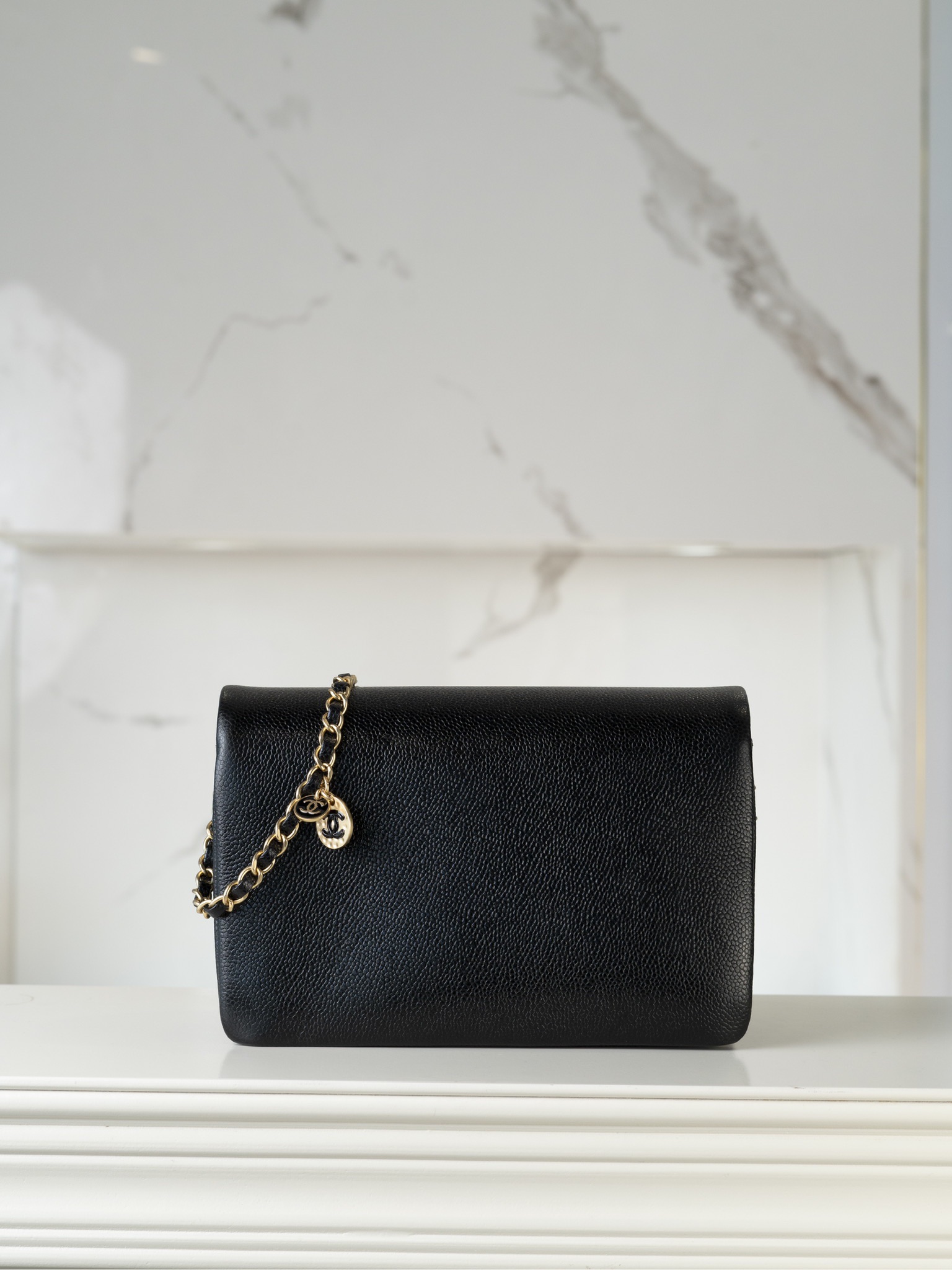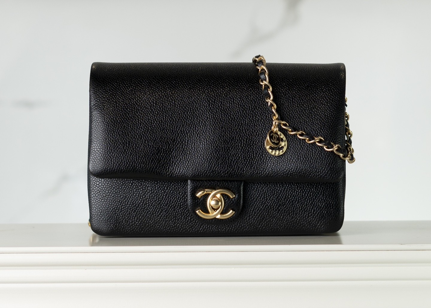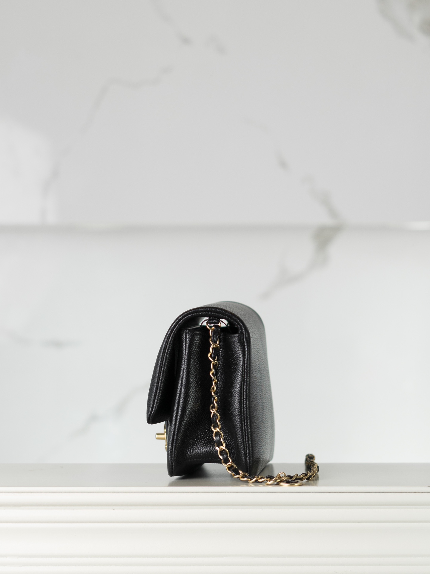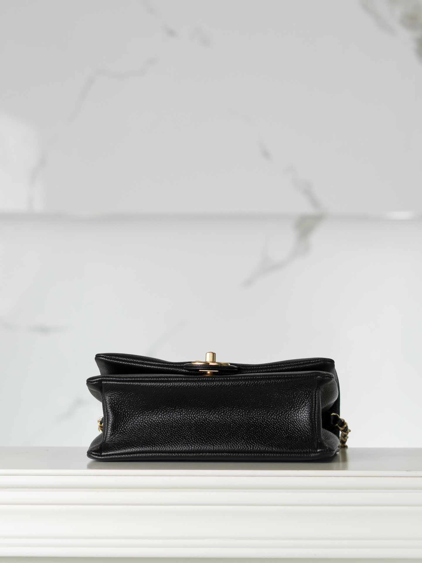 샤넬 캐비어 클래식 플랩백 미디엄 블랙 금장