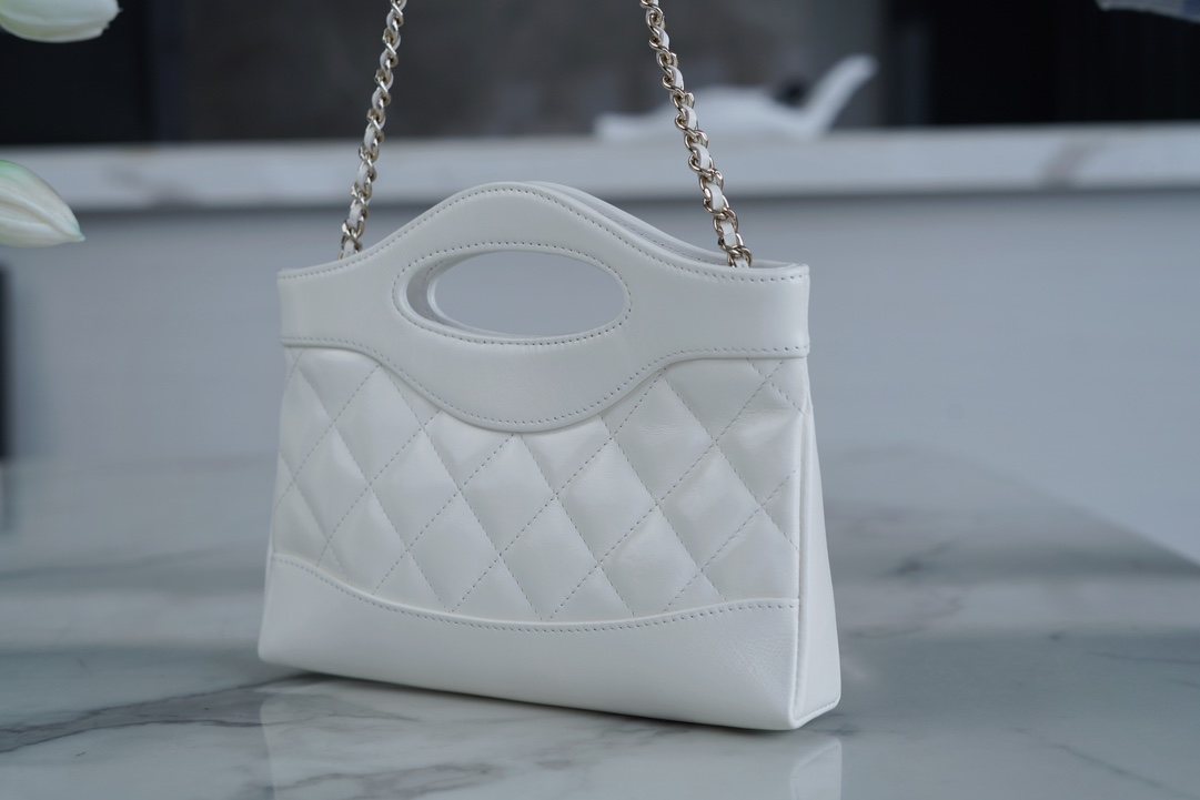 샤넬 31 미니 쇼핑백 램스킨 화이트 골드 메탈 (24S)