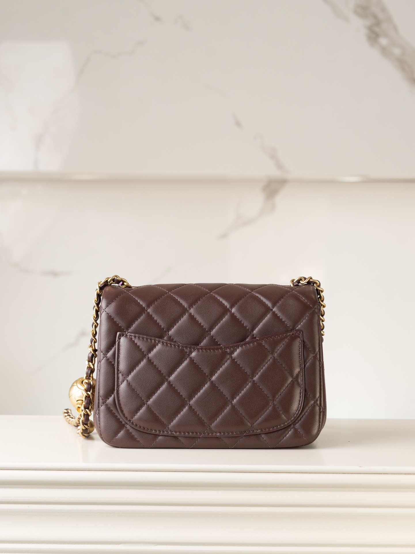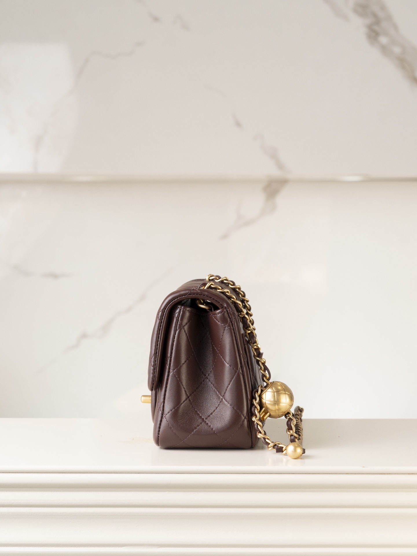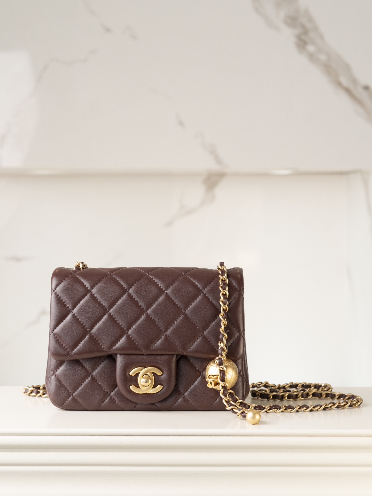 샤넬 미니 클래식 플랩백 골드 메탈 볼 · 램스킨 · 와인 (24K)