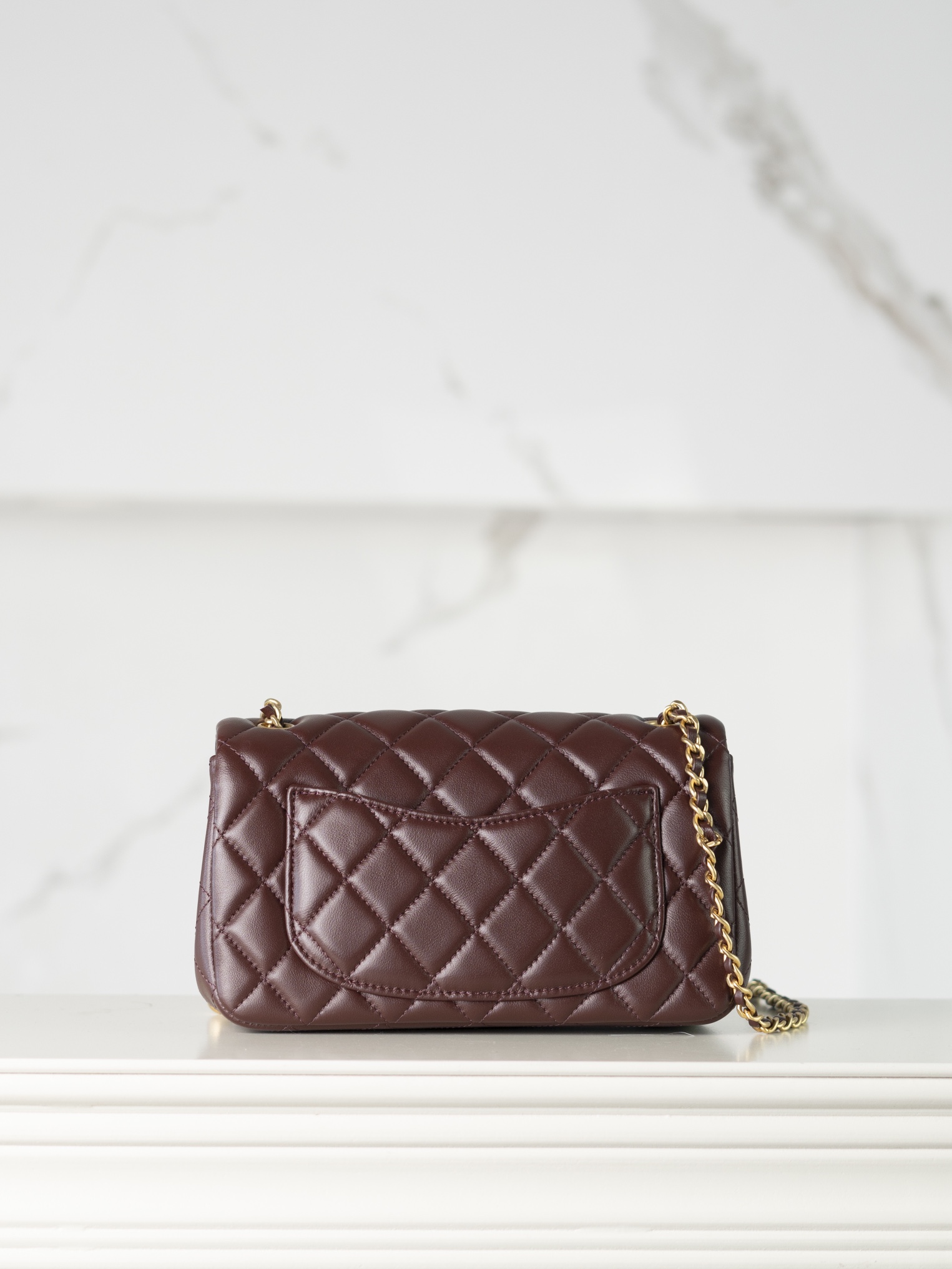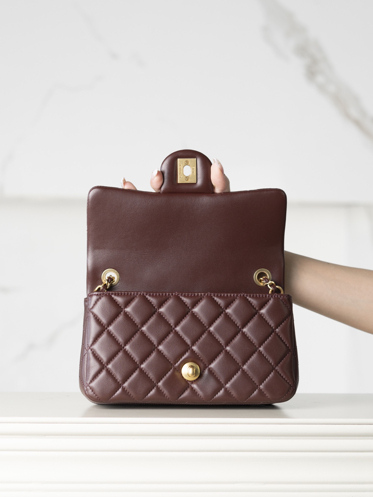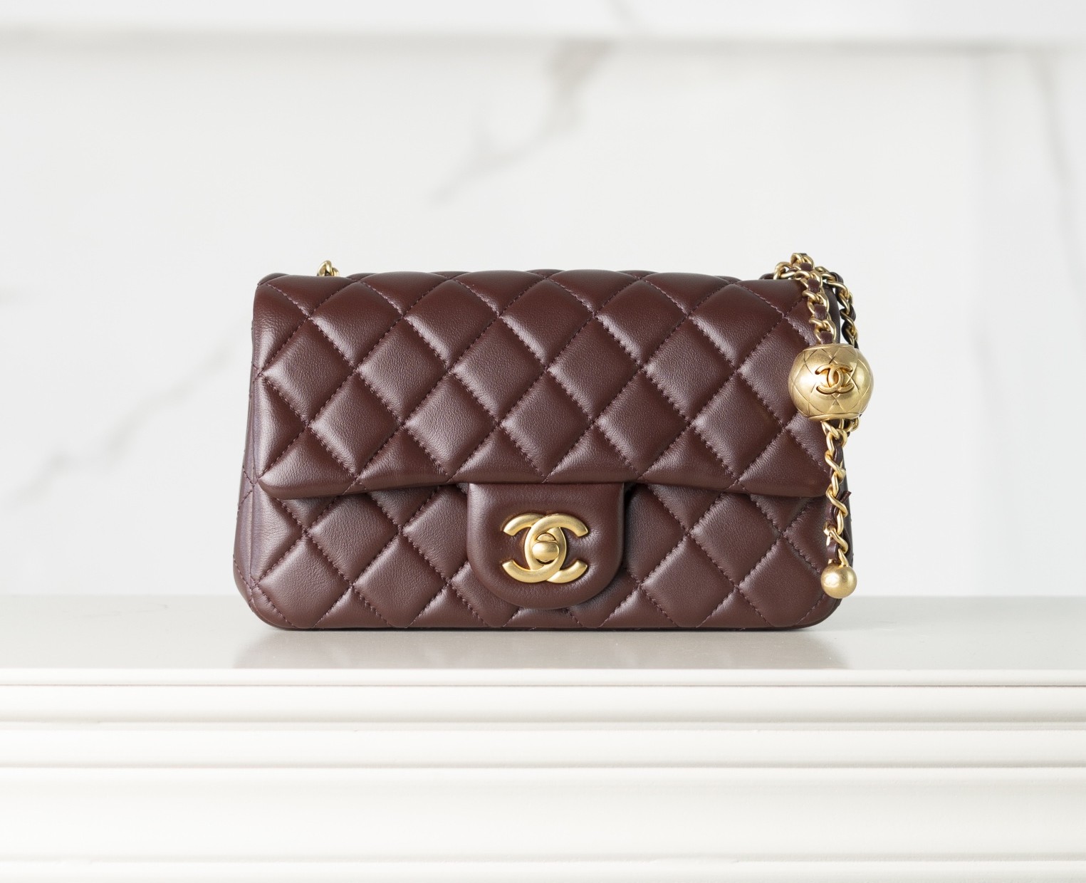 샤넬 플랩백 골드 메탈 볼 · 램스킨 · 와인 (24K)