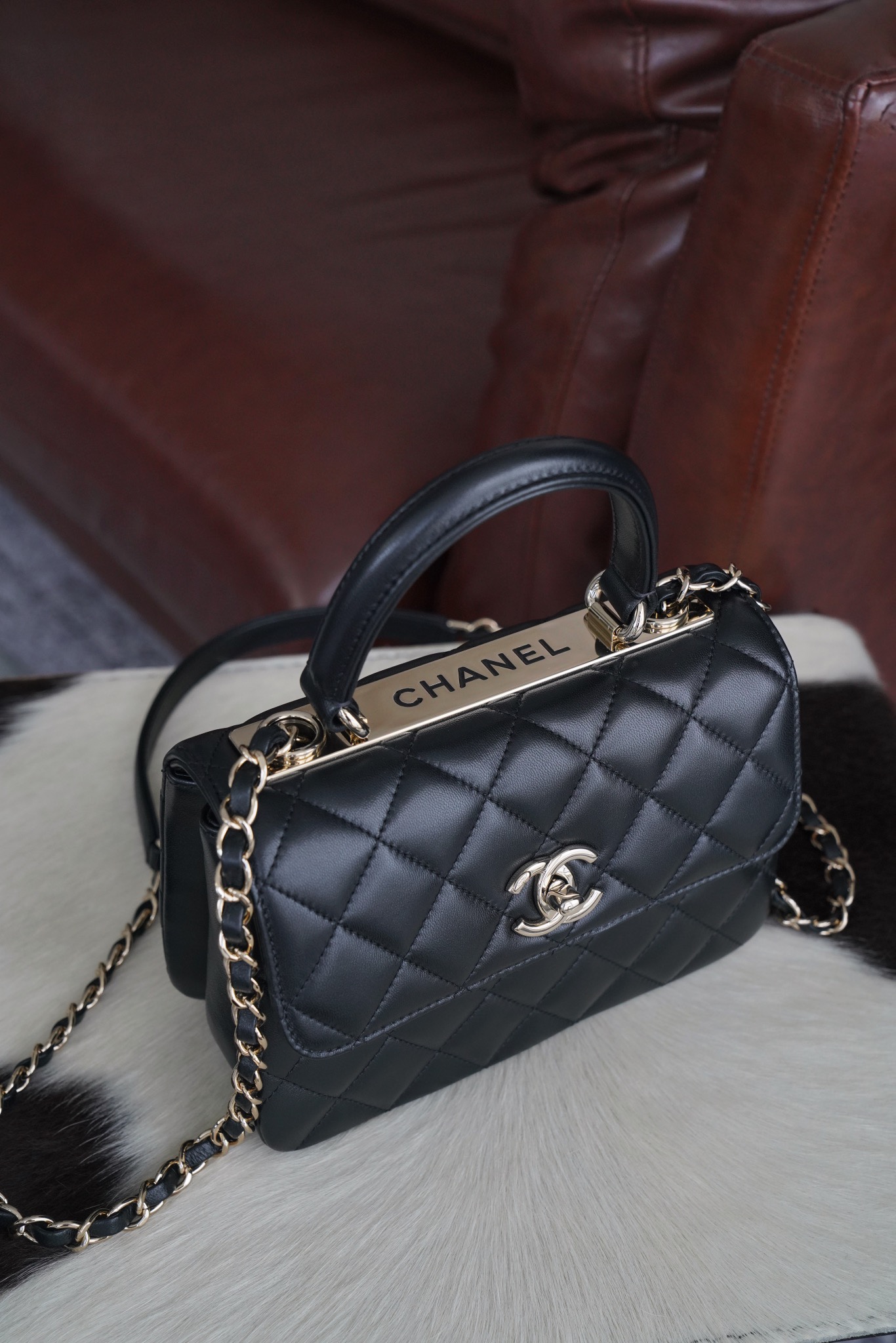 샤넬 24C 트렌디 CC 플랩 핸들백 미니 블랙 · 골드 메탈