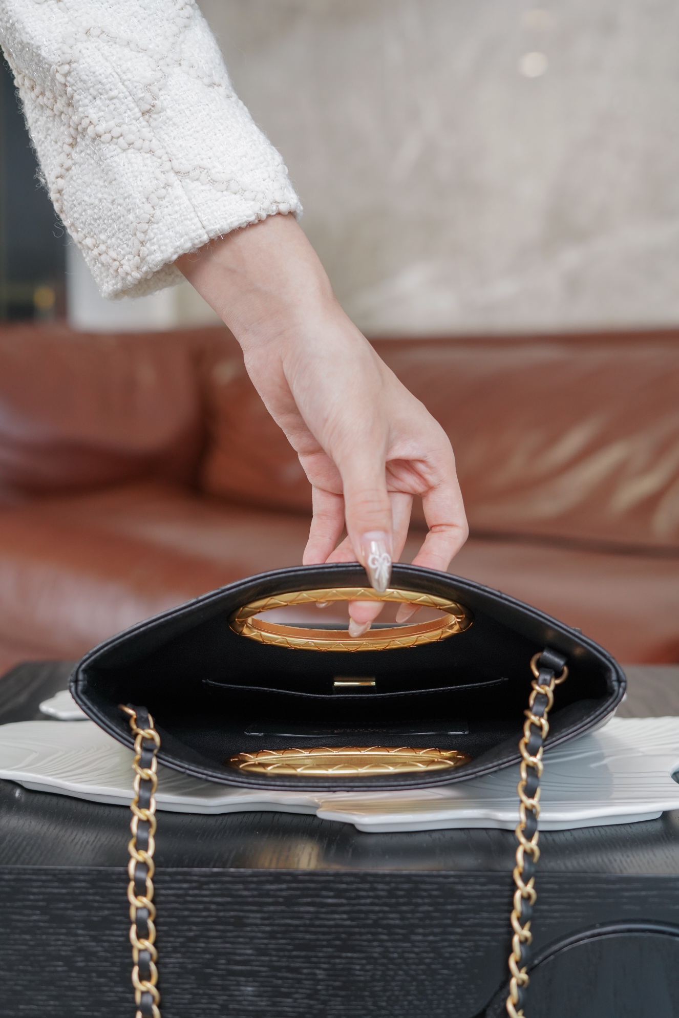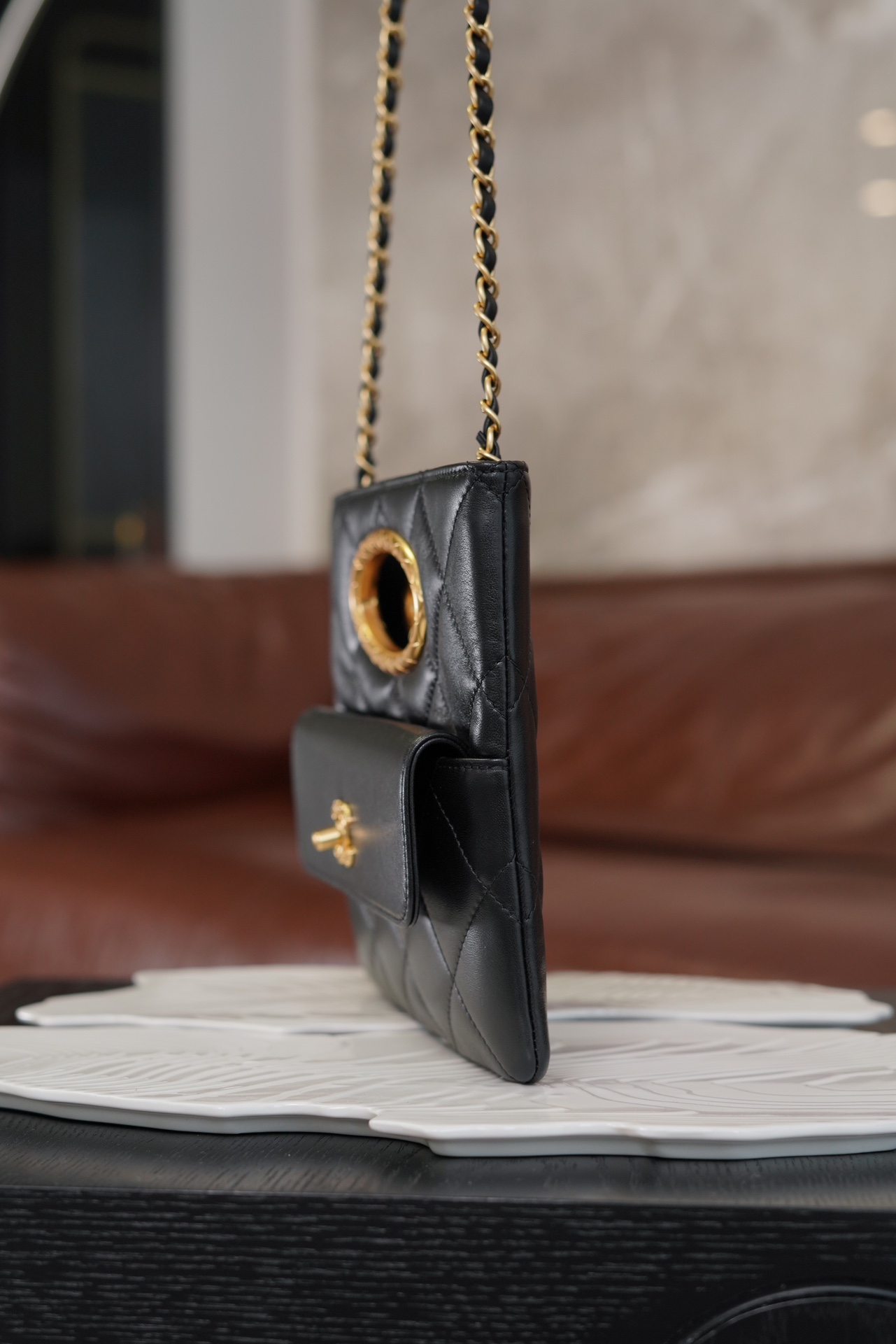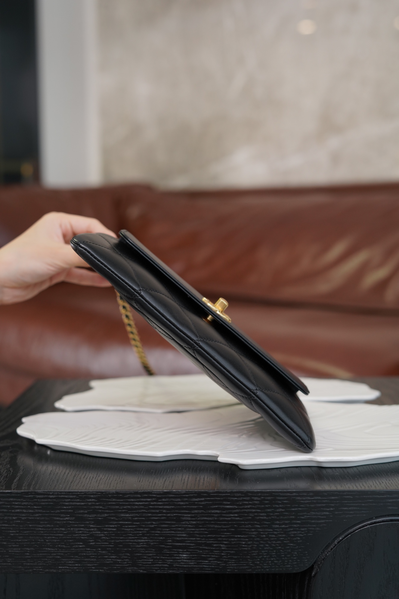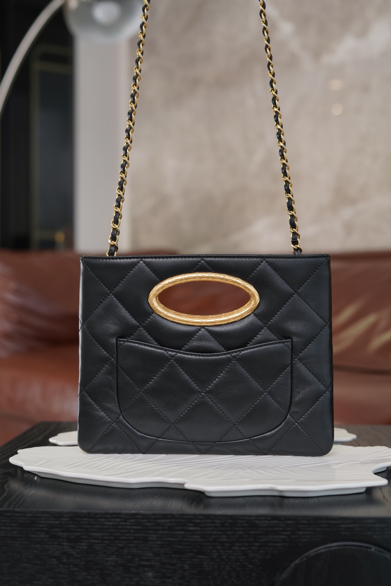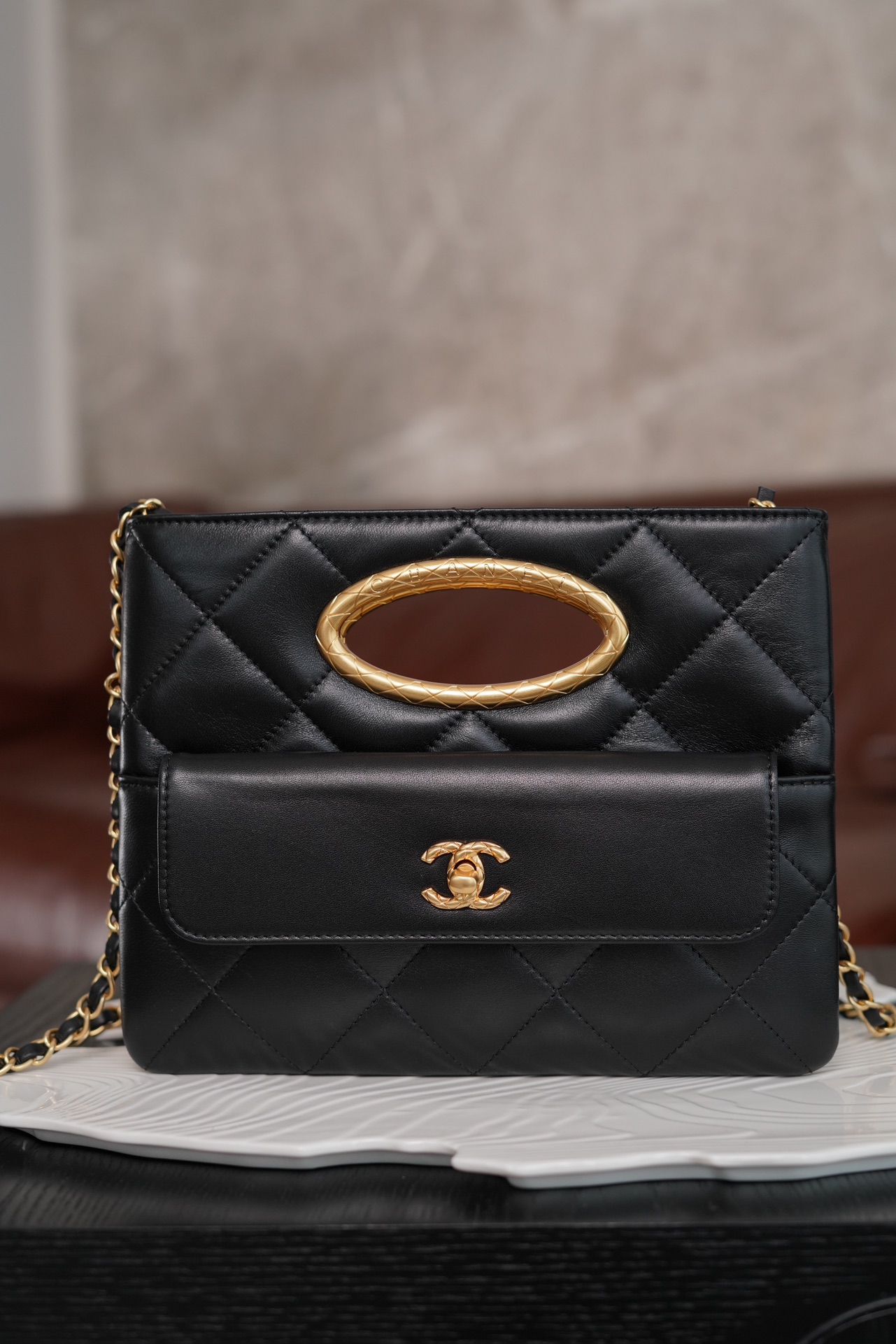 샤넬 탑핸들 체인 클러치 램스킨 · 골드 메탈 · 블랙 (24B)