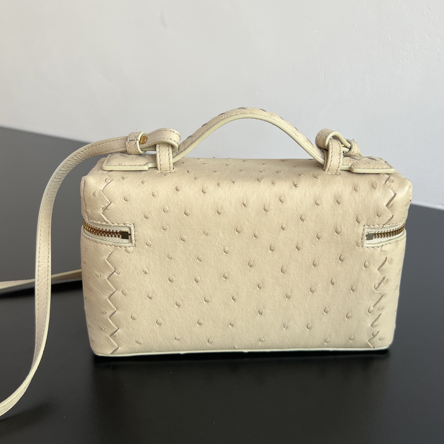 보테가베네타 뱅뱅 베니티 케이스 오스트리치 카모마일 22cm