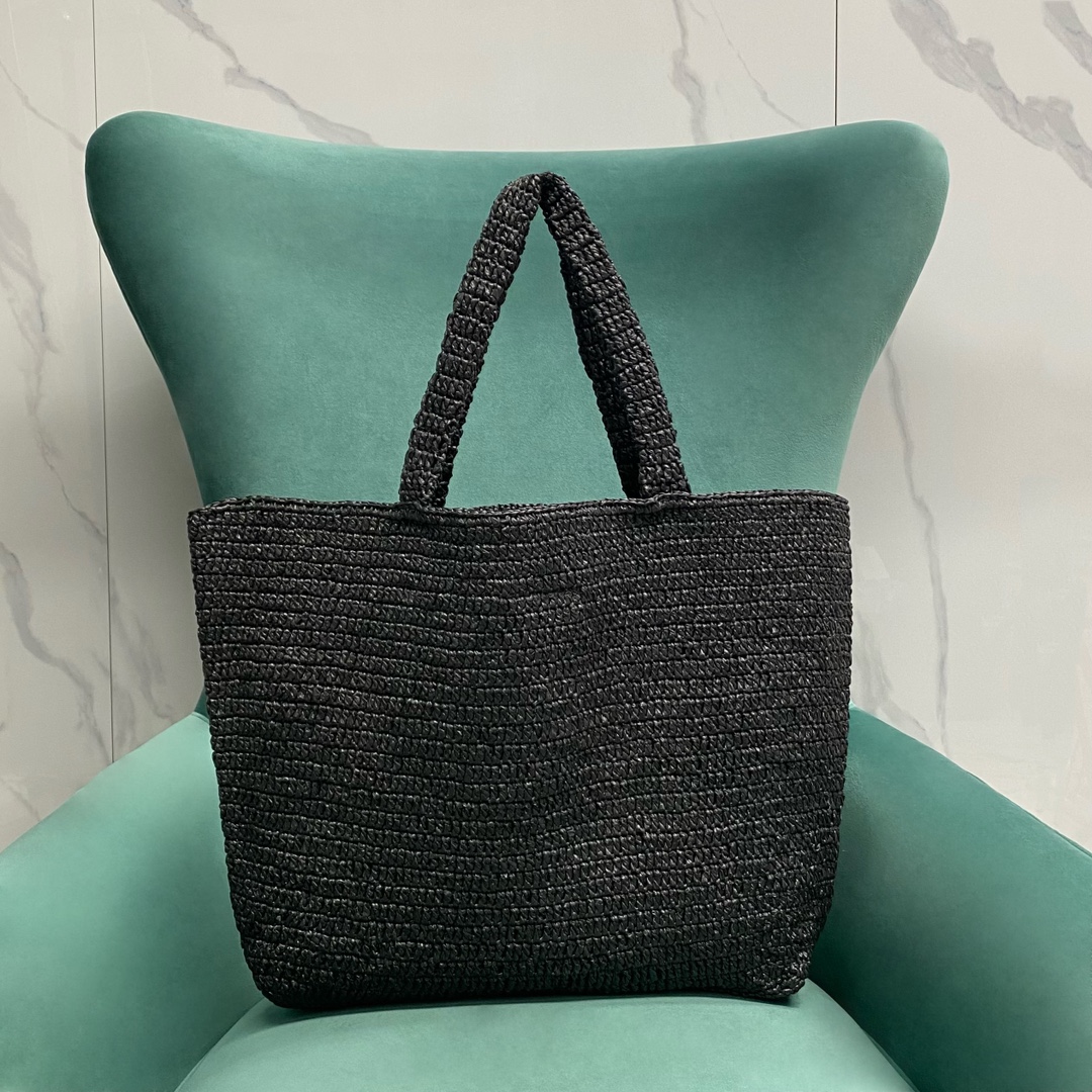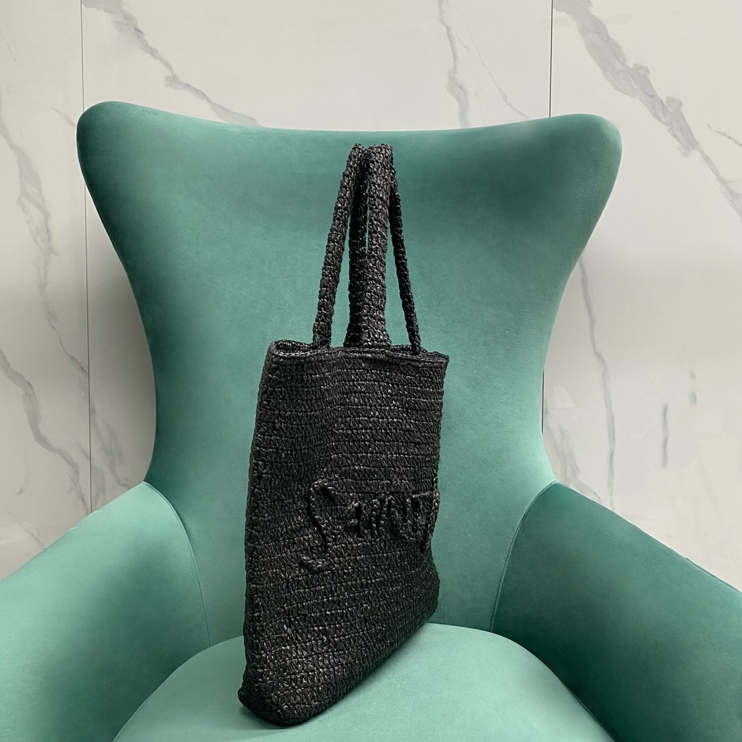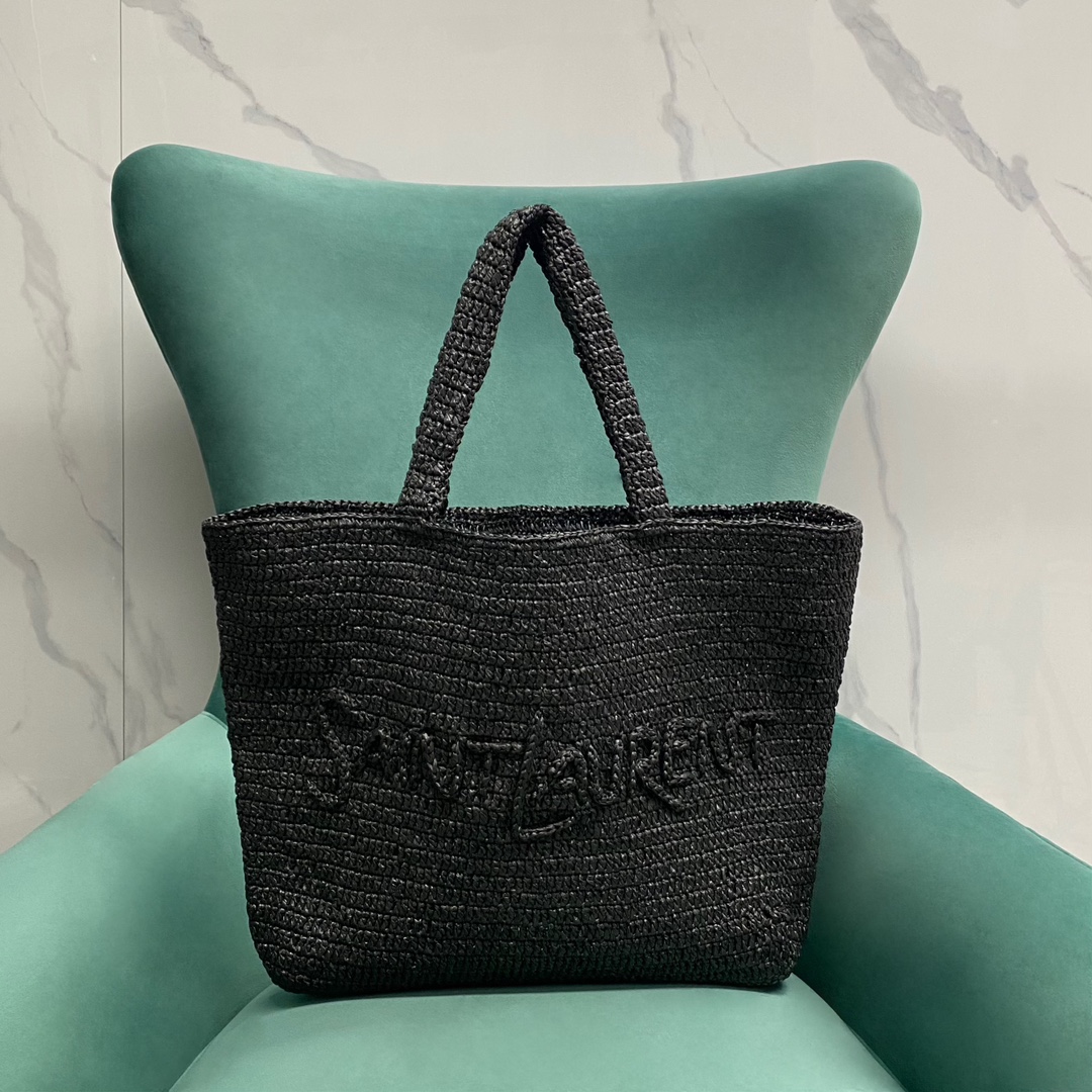 생로랑 로고 라피아 토트백