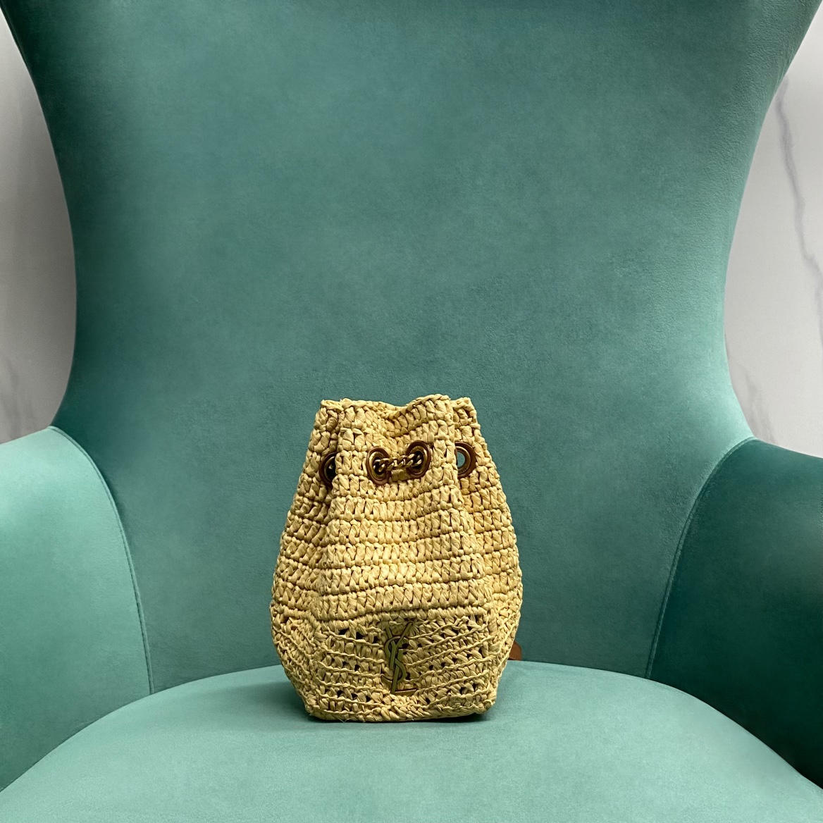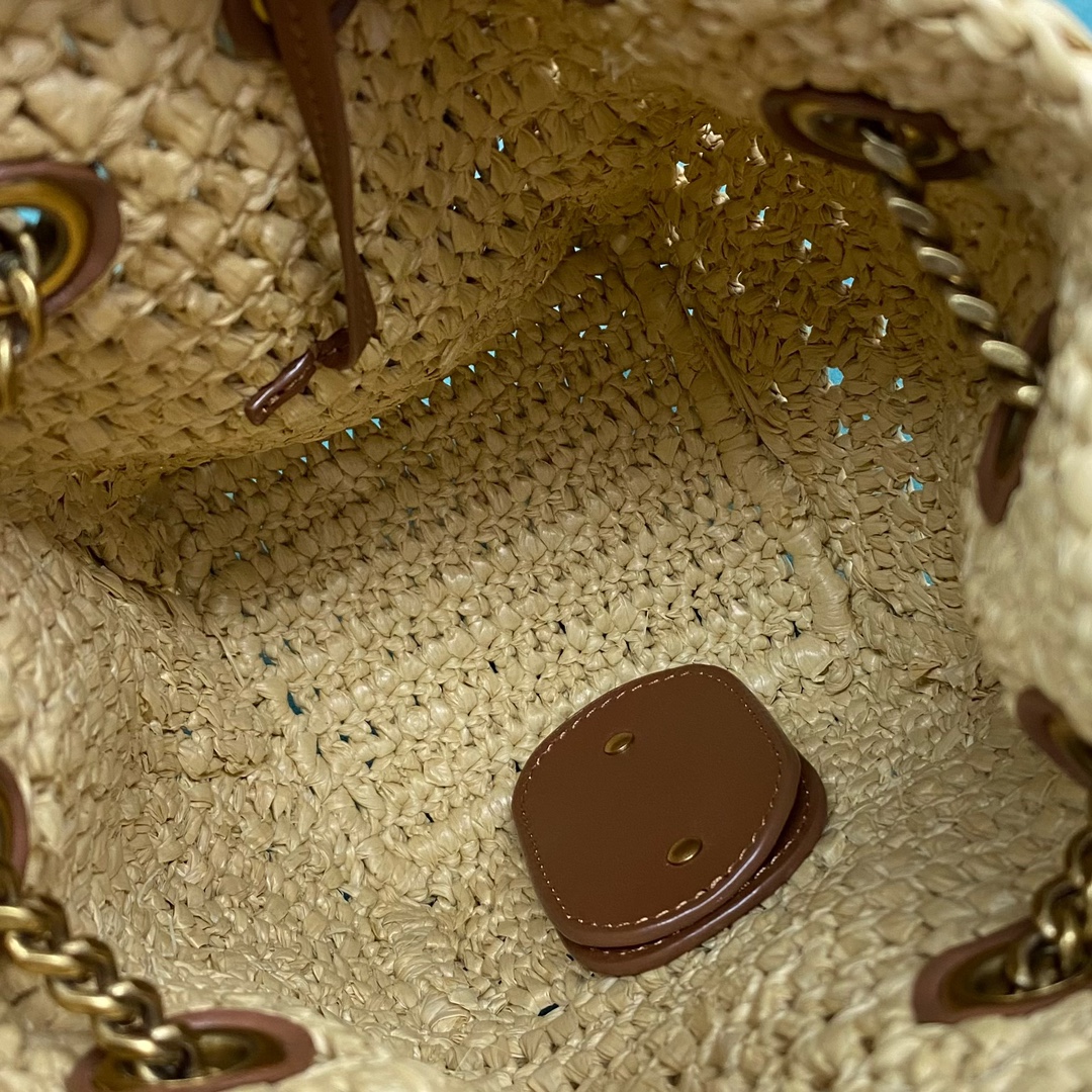 생로랑 미니 JOE 라피아 버킷 백