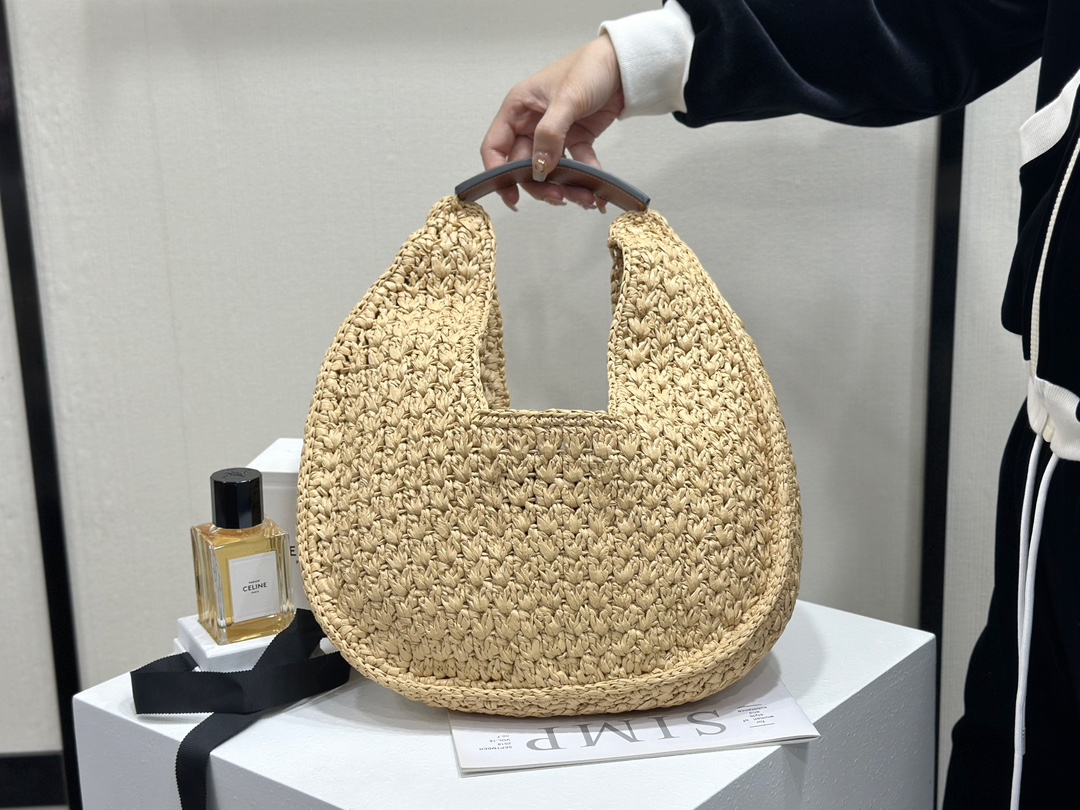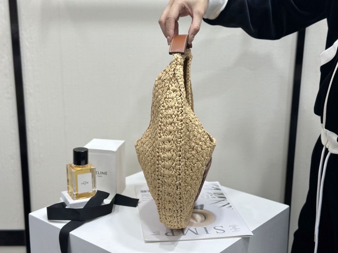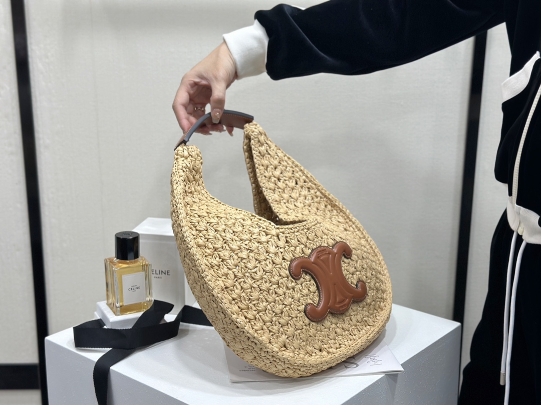 셀린느 클래식 파니에 호보백 라피아 & 카프스킨 탠