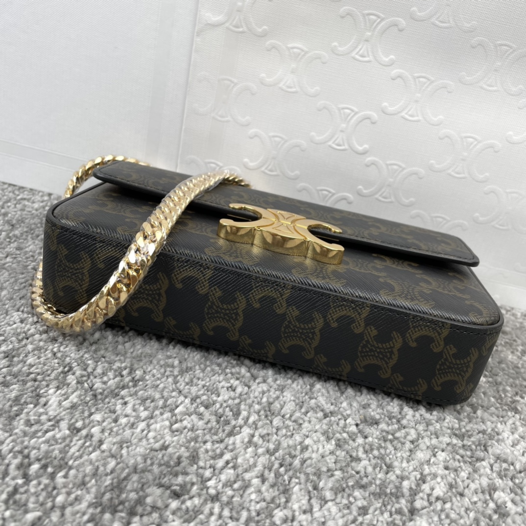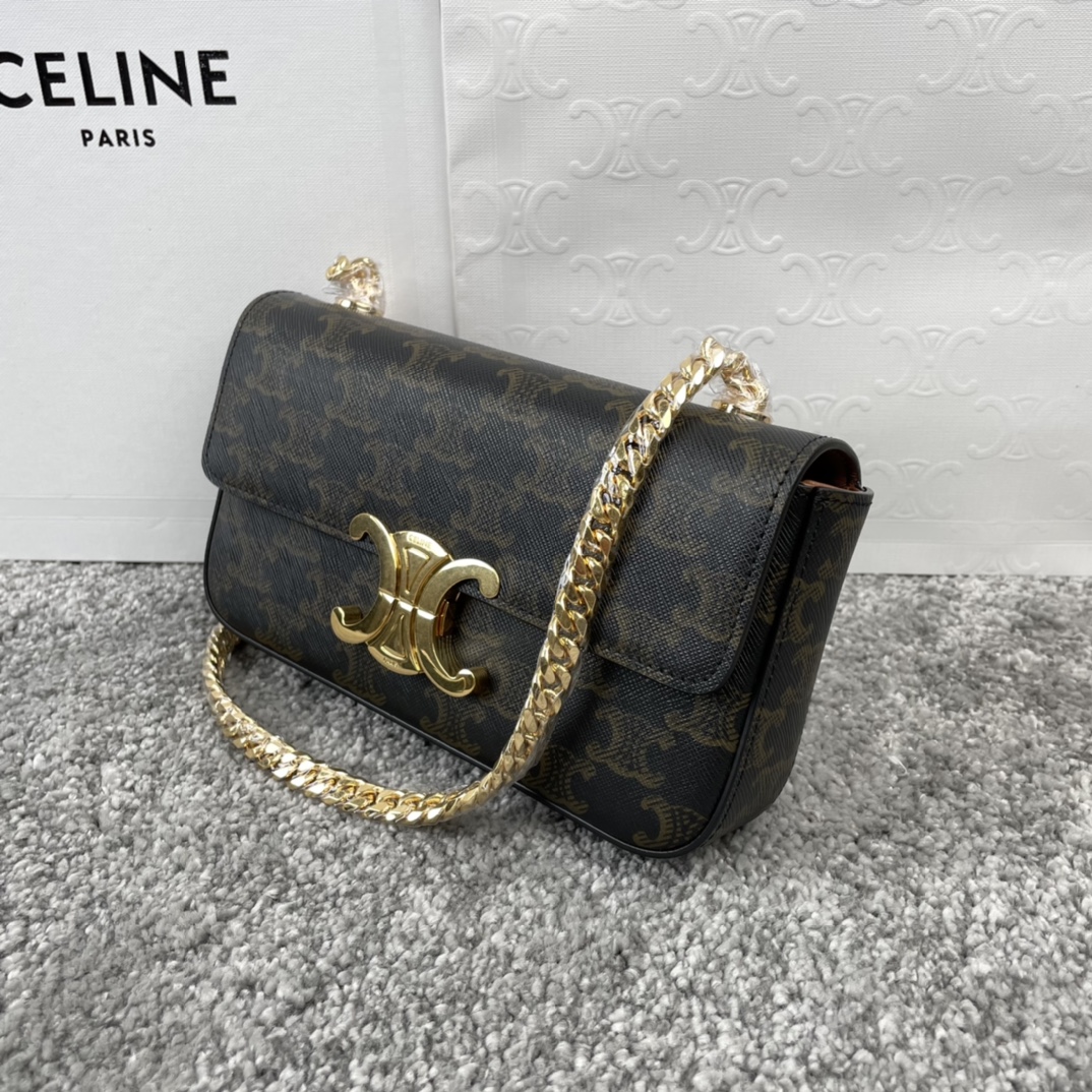 셀린느 클로드 체인 숄더백 트리옹프 캔버스 & 카프스킨 탠