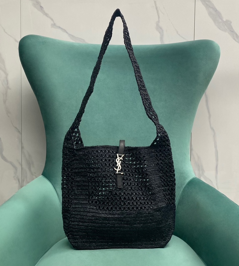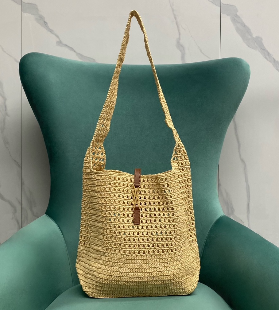 생로랑 LE 5 À 7 라피아 크로쉐 호보백