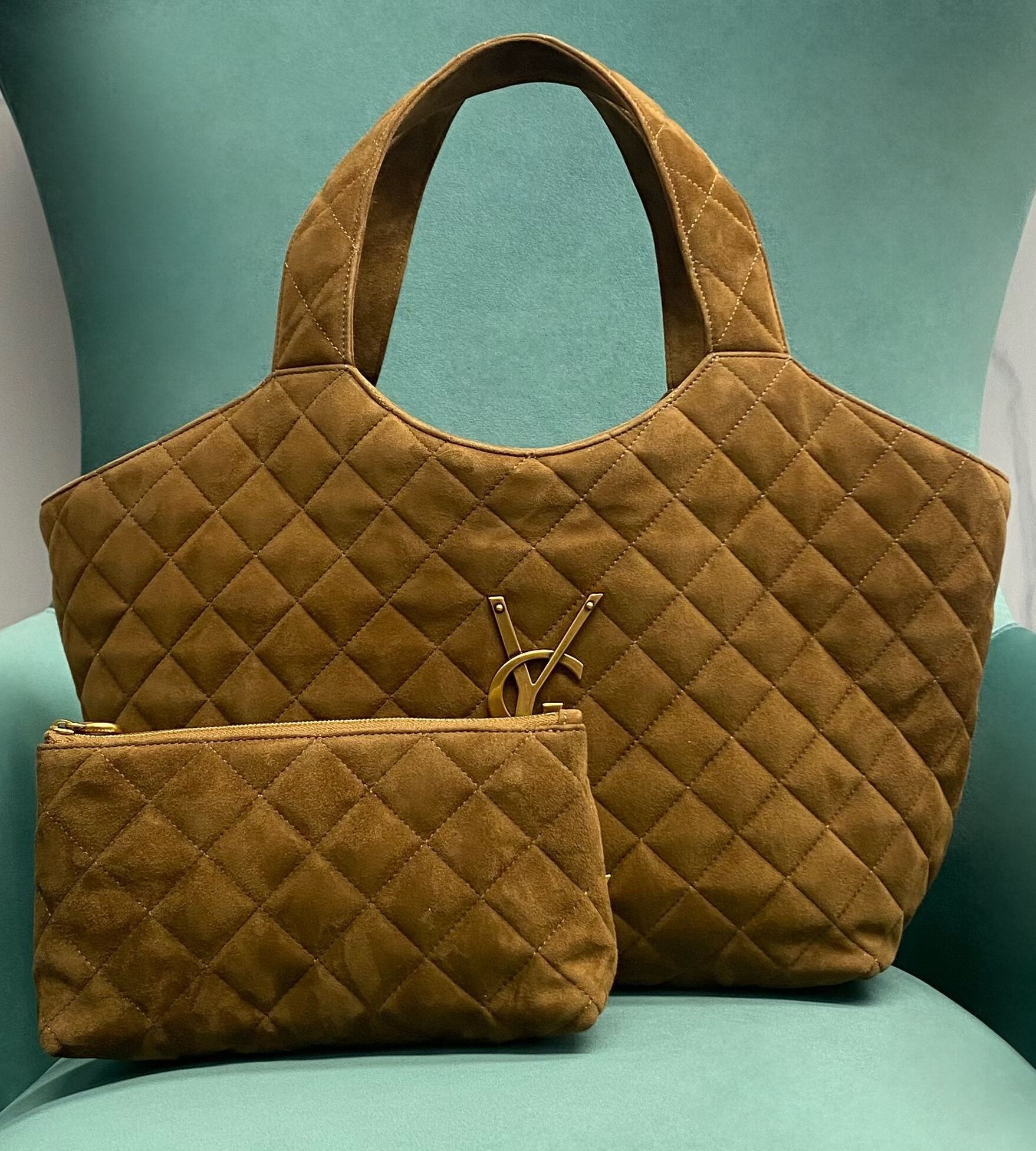 생로랑 퀼팅 스웨이드 ICARE 쇼퍼백