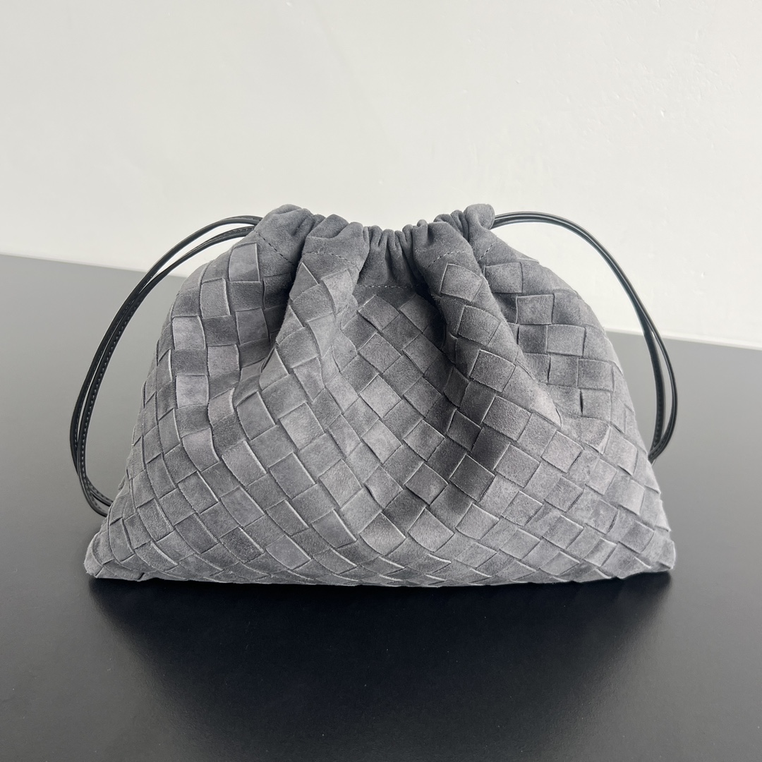 보테가 베네타 그레이 스웨이드 인트레치아토 드로스트링 파우치