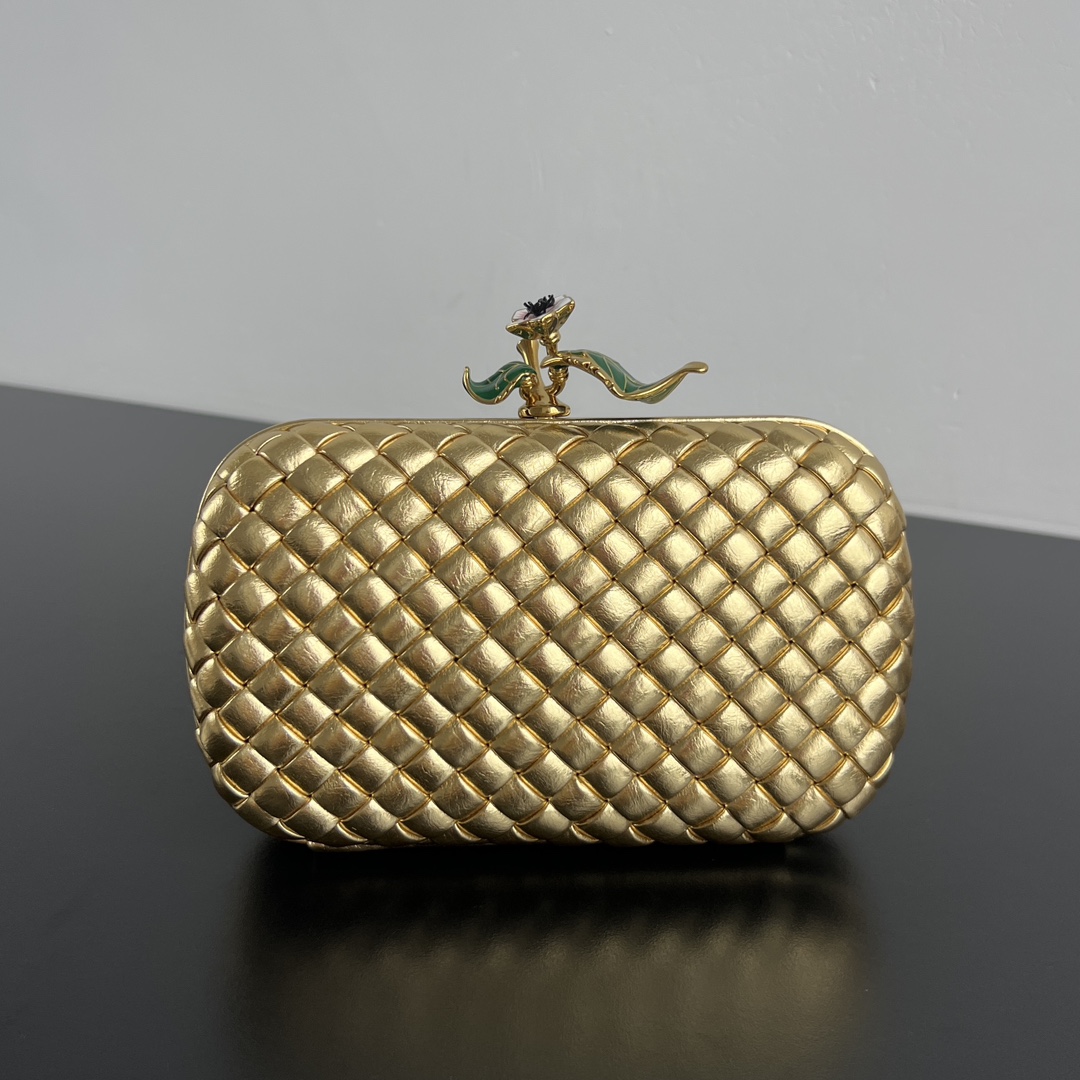 보테가 베네타 골드 메탈릭 노트 이브닝 클러치