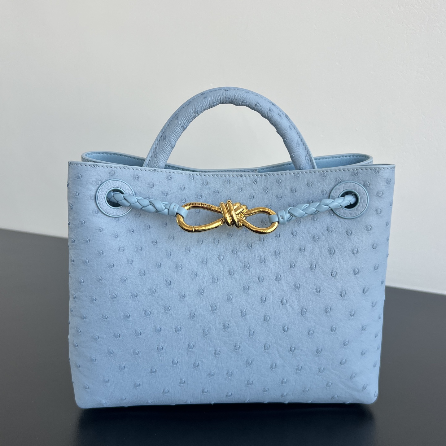 보테가베네타 스몰 안디아모 타조가죽 탑핸들 숄더백