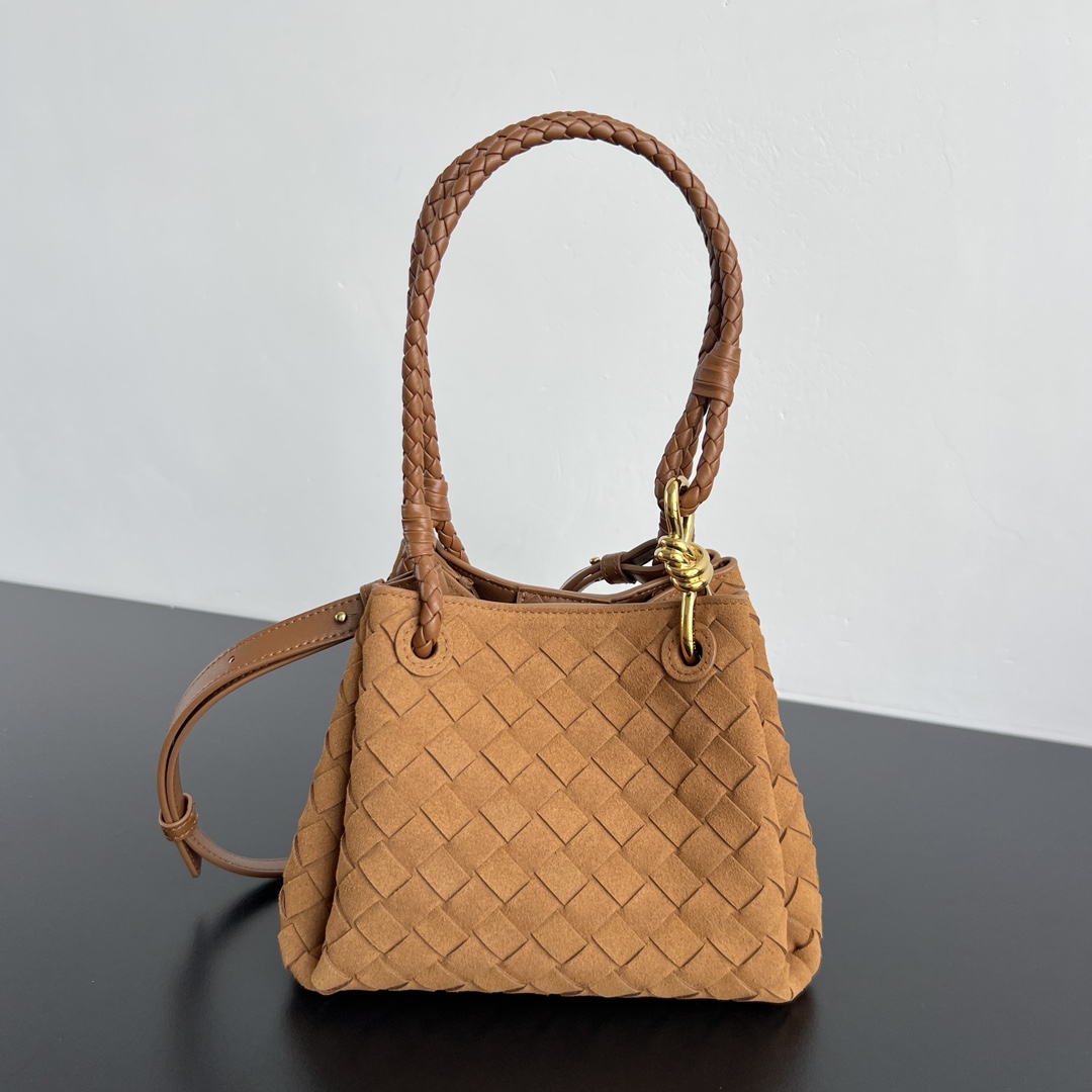 보테가베네타 스몰 안디아모 인트레치아토 스웨이드 탑핸들 숄더백